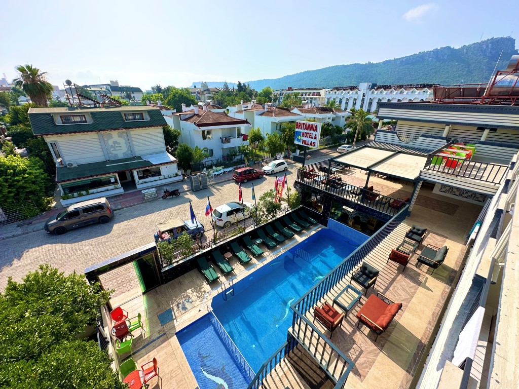 Otelimiz Kemer merkezde bulunmaktadır. Oda Kahvaltı ve Yarım Pansiyon konsepti ile misafirlere hizmet sunmaktadır. Tesisin 105 oda ve 16 adet apart villası bulunmaktadır. Otelde bar, restaurant, açık yüzme havuzu ve çocuk yüzme havuzu vardır. Denize uzaklığı 200 mt. Antalya havalimanı uzaklığı 45 km. dir. Britannia Otel Kemer merkezde 3.000 m2'lik bir alan üzerine kurulmustur. Tesisimiz sehir merkezi'nde bulunmaktadir. Ünlü gece klubleri Inferno Aura Kristal gece klublerine 500 metre ve Moonlight Park 250 metre yürüyüs mesafesindedir.